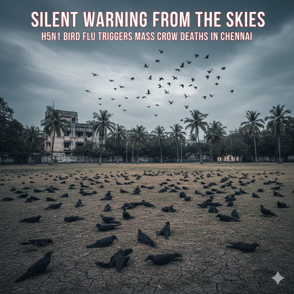 The sudden death of hundreds of crows across Chennai has raised serious concerns, with laboratory tests confirming the presence of the H5N1 avian influenza virus. The incident has prompted health and animal husbandry authorities to issue advisories and step up surveillance efforts across the region. Though H5N1 affects mainly birds, the detection of the virus underlines the need for strict biosafety and awareness among the public. As officials work to contain the spread, the situation has brought into sharp focus how quickly avian diseases can strike the heart of urban India.